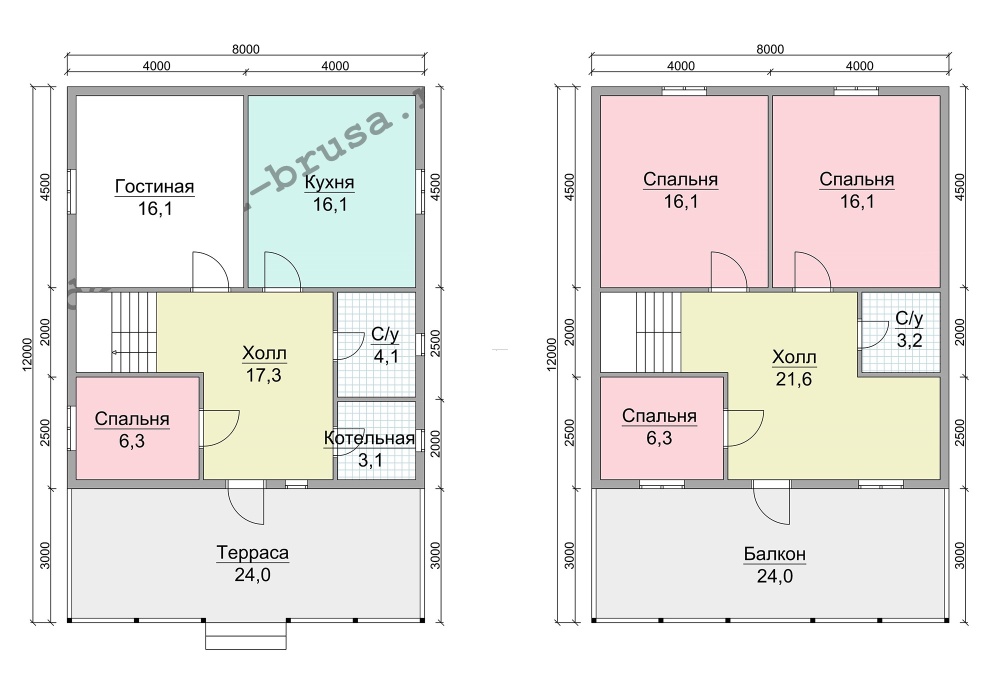 Два вида профиля: 1. С двух сторон, прямой со снятой фаской. 2. Снаружи под «блок- хаус», внутри прямой. Высота сруба: Сруб одноэтажный- 18 венцов Сруб с мансардой- 18 венцов Сруб в 1,5 этажа- 18 венцов, далее каркас с внешней отделкой имитацией бруса. Сруб в 2 этажа- 37 венцов |