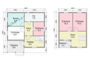 | Под усадку (без отделки) | 8х8 | Cруб дома 190х140 мм | 2056200 | Заказать |