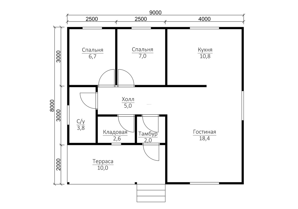 | Двери | Входная- металлическая, утеплённая (Россия). Межкомнатные- филёнчатые. | Отсутствуют. |