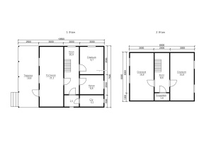 | Перегородки 1-го этажа | Профилированный брус камерной сушки, сечением 90х140 мм. | Профилированный брус естественной влажности, сечением 90х140 мм. |