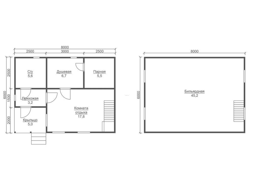 Баня одноэтажная: 2,5 м.